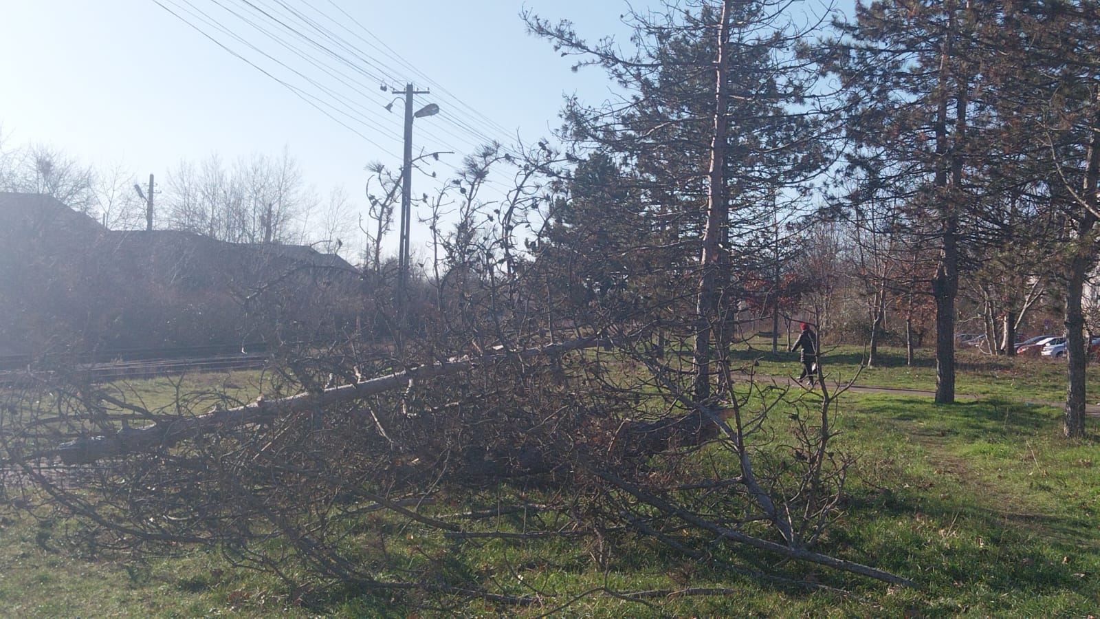 Rușine administrativă în Plopeni: Doi copaci au căzut peste cablurile electrice. Oamenii au sunat la 112, iar o tragedie a fost evitată la limită.